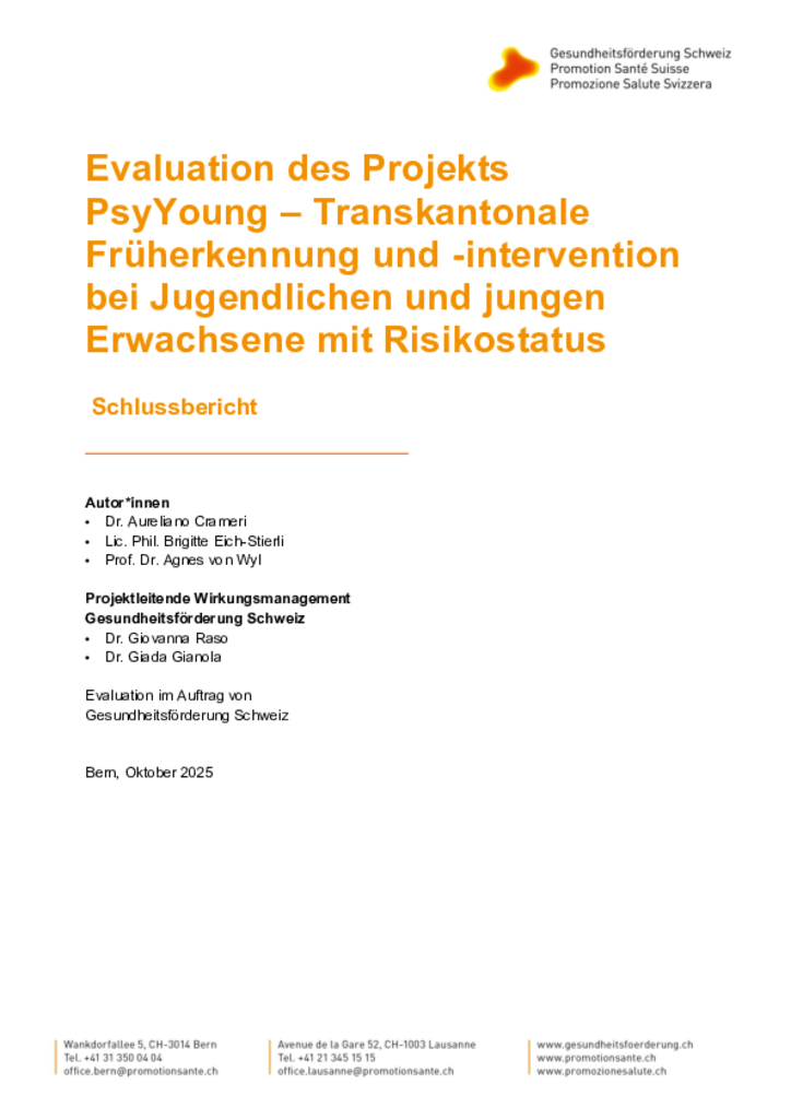 Evaluation des Projekts PsyYoung – Transkantonale Früherkennung und -intervention bei Jugendlichen und jungen Erwachsene mit Risikostatus