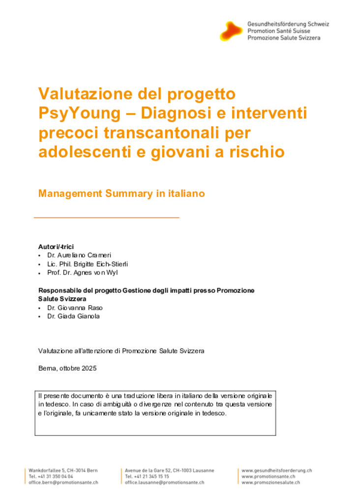 Valutazione del progetto PsyYoung – Diagnosi e interventi precoci transcantonali per adolescenti e giovani a rischio