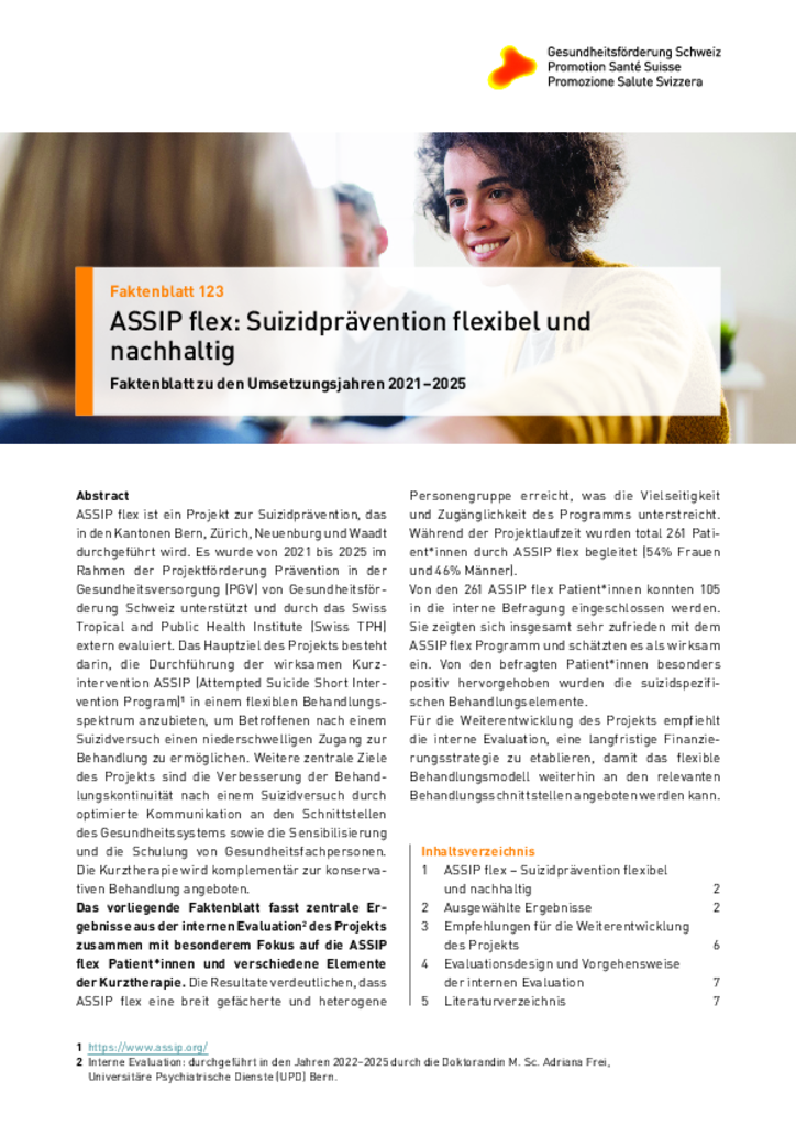 Evaluation: Suizidpräventionsprojekte im Bereich Prävention in der Gesundheitsversorgung PGV - Projekt ASSIP Flex