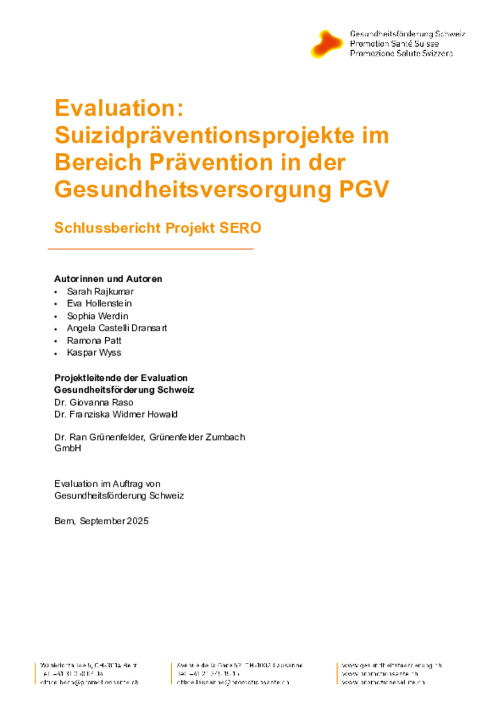 Evaluation: Suizidpräventionsprojekte im Bereich Prävention in der Gesundheitsversorgung PGV - Projekt SERO